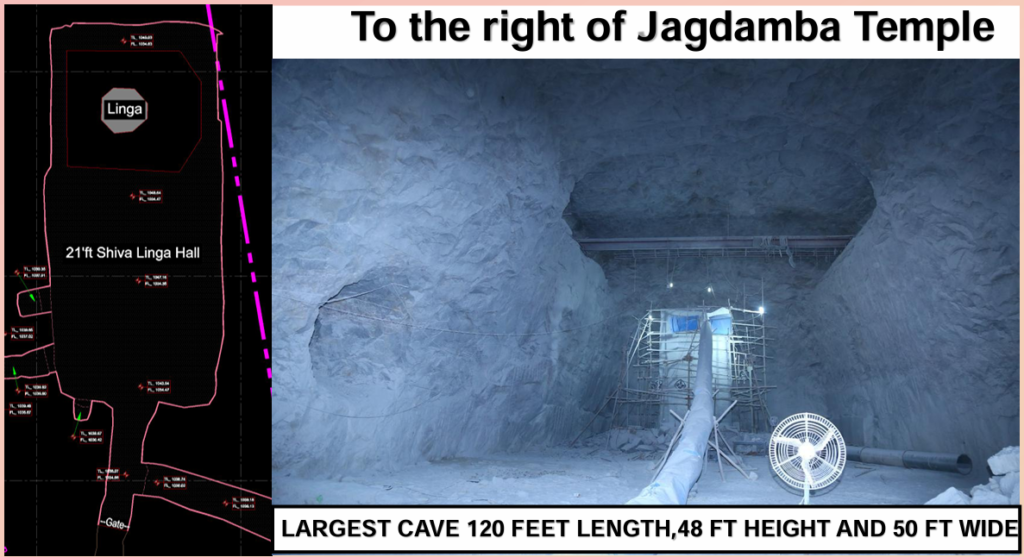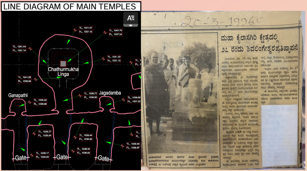 The Line Diagram in the image shows the plan for implementation of Chathurmukha Linga Temple, Jagadhamba and Ganapathi Temples on kailasagiri hill range.