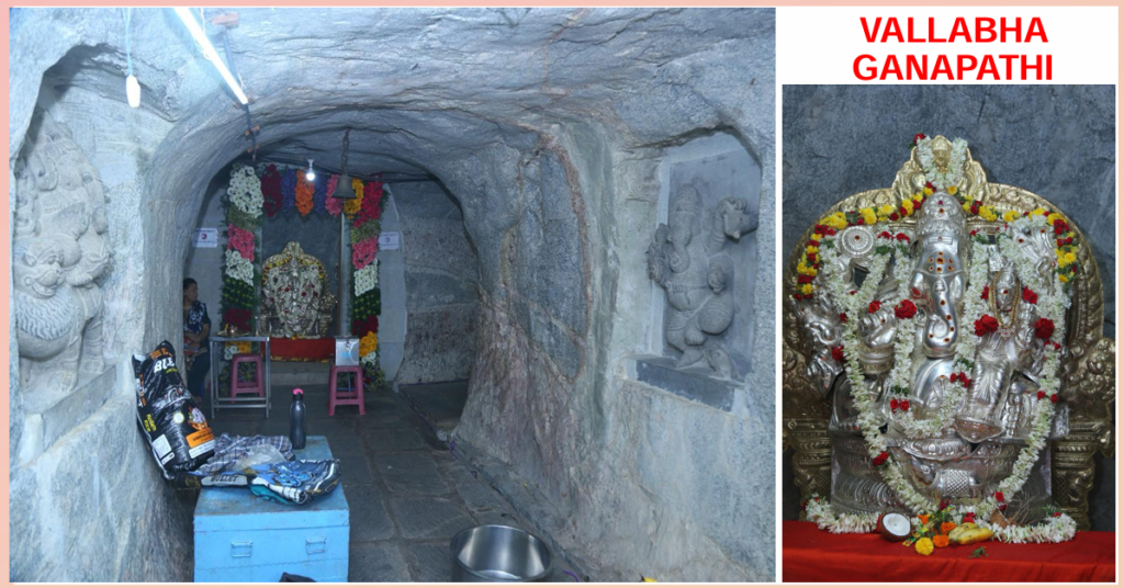 The image depicts the Vallabha Ganapathi temple inside the kailasagiri hill caves.